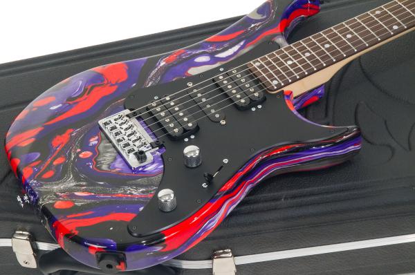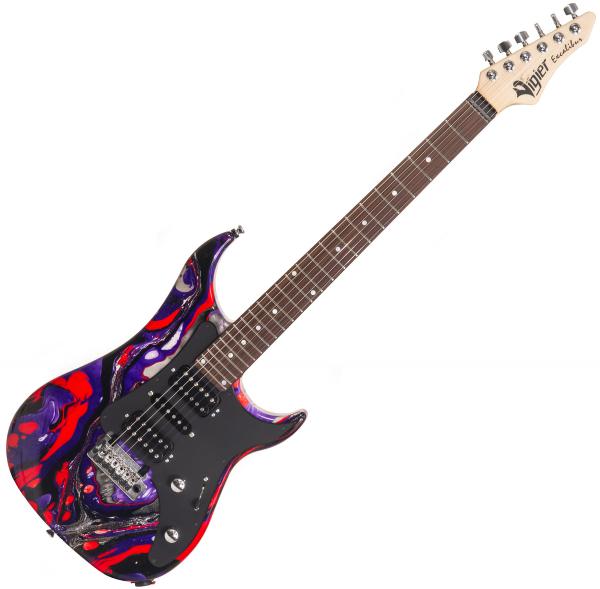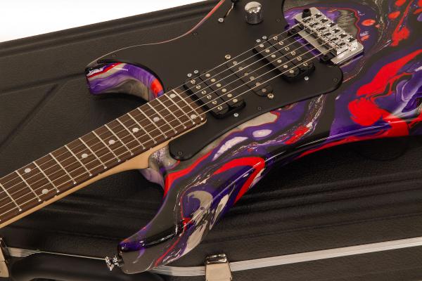 La Vigier Excalibur SupraA, fabriquée en France, allie héritage et performance. Sa finition « Rock Art Purple Red Black » unique, ses micros Amber et son manche à zéro-frette en font une machine de scène et de studio d’exception.